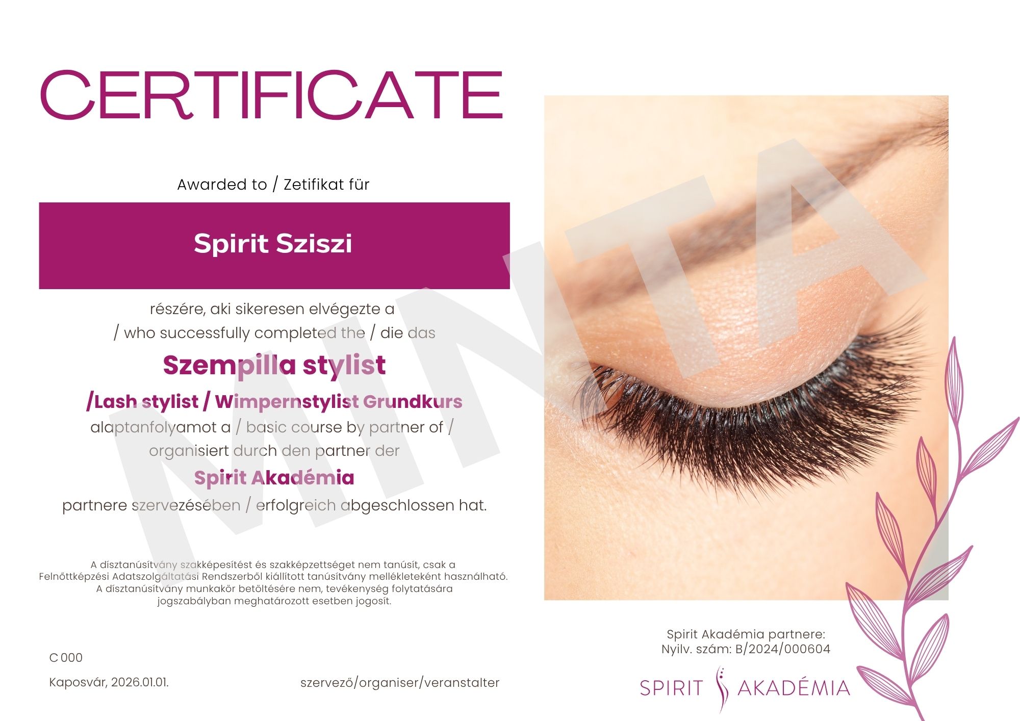Szempilla stylist alaptanfolyam képzésünket egyéni vállalkozó partnerünk szervezi.